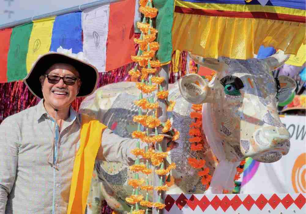 The only thing I requested was that it was under a covering. It could be in the open air, and it will disintegrate eventually—that’s part of impermanence—but I don’t want to reconstruct it again because I already did it once. She said a wish-fulfilling cow would be a great thing to be part of The Buddhist Center. Later, Nina and Jeff saw it in the restaurant and Nina said she’d love to have it in the center. I said, You don’t have to pay me anything, as long as I don’t have to reconstruct it. So, this year, 2024, the cow will be delivered to the center.